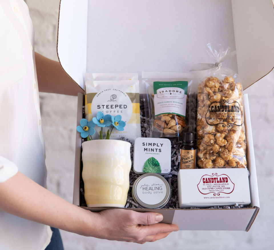 Products are thoughtful and sensitive to various characteristics in the grief journey. Our selected items are useful, beautiful, and honor self-care. Many of our products are meant to be eaten or used and eventually disappear—including the recycled shipping box it comes in.